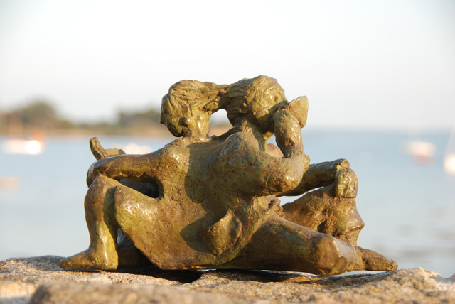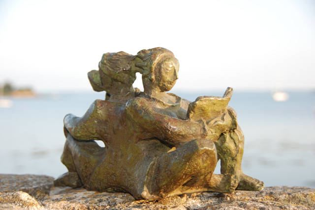 Deux êtres peuvent être intérieurement liées tout en regardant dans des directions opposées avec des occupations différentes. Calme et équilibre se dégagent de cette œuvre.